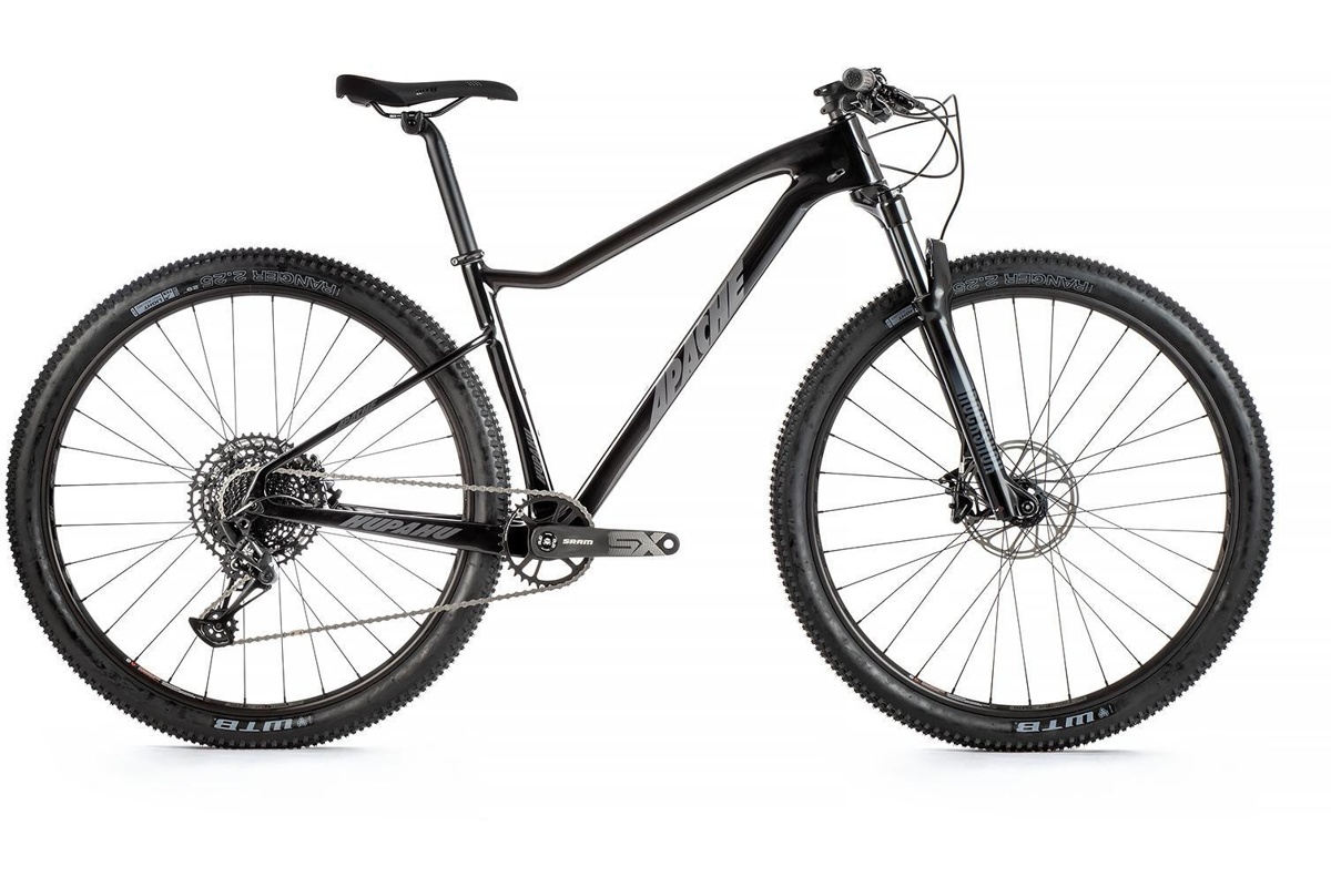 Apache Hupahu C3 je horsk? kolo s karbonov?m r?mem, koly o průměru 29 palců, odpruženou vzduchovou vidlic?, kotoučov?mi brzdami a pohonem 1x12.