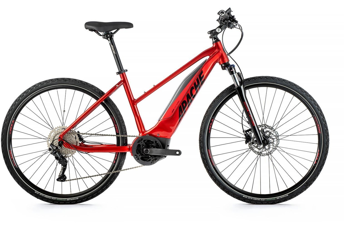 Apache Matta 1 Bosch?je d?msk? krosov? elektrokolo s hlin?kov?m r?mem, kter? je vybaveno středov?m motorem Bosch PF Line Gen. 3, bateri? o kapacitě 500 Wh, pohonem Shimano 1x10, odpruženou vidlic? a koly o průměru 28 palců.