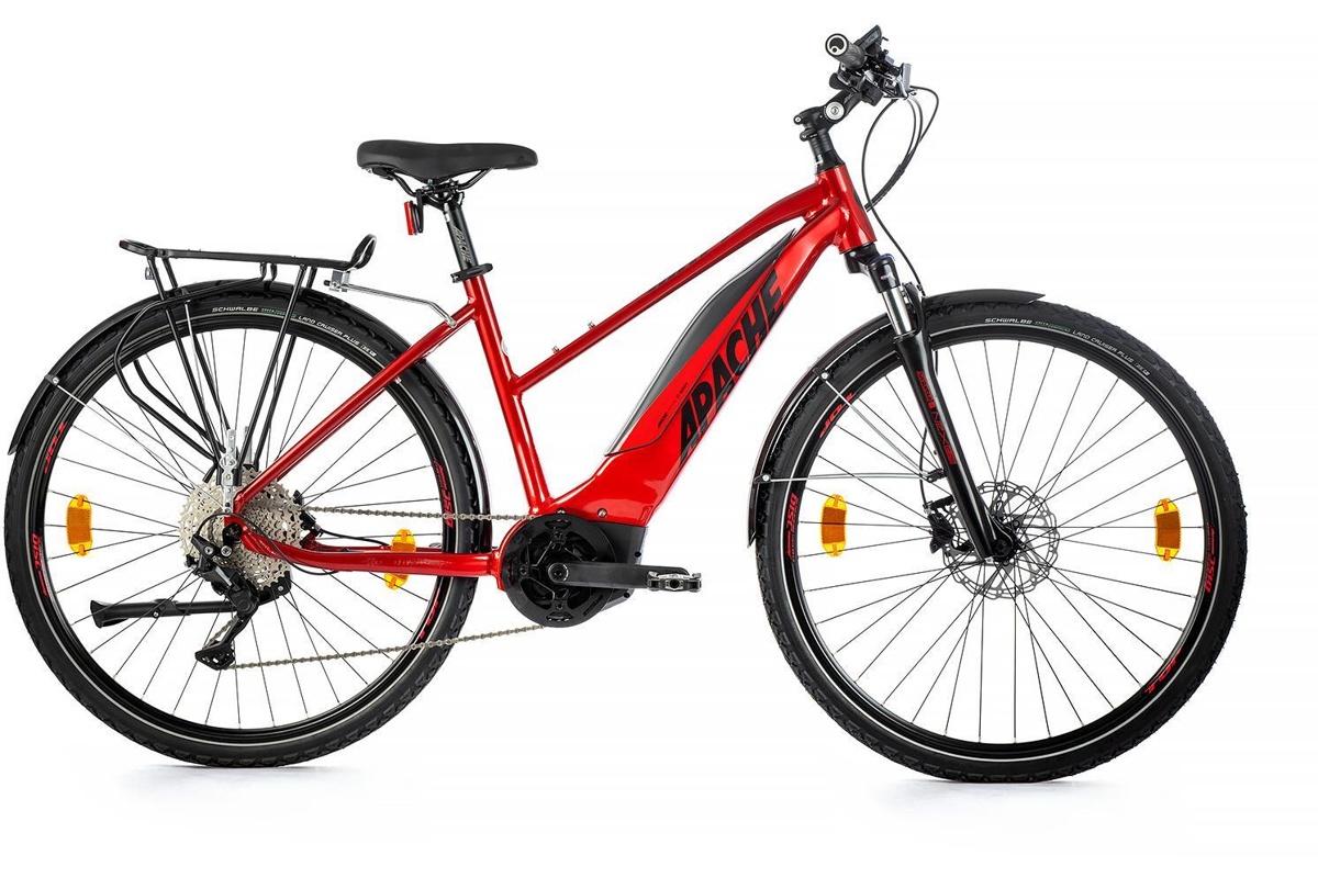 Apache Matta 1 Bosch?Tour,?je d?msk? krosov? elektrokolo s hlin?kov?m r?mem a doplňky (nosič, blatn?ky, stojan a zadn? světlo), kter? je vybaveno středov?m motorem Bosch PF Line Gen. 3, bateri? o kapacitě 500 Wh, pohonem Shimano 1x10, odpruženou vidlic? a koly o průměru 28 palců.