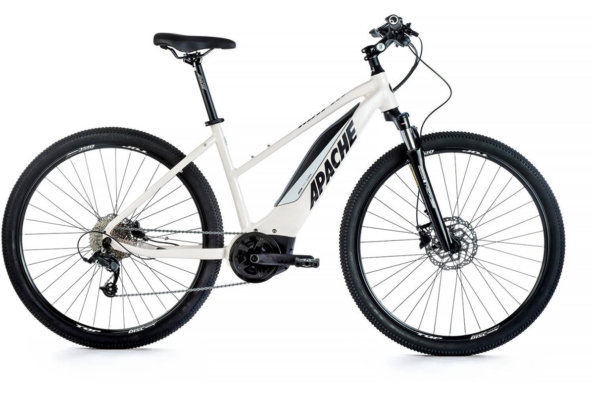 Apache Matta 3 Bosch?je d?msk? krosov? elektrokolo s MTB pl?štěm 54-622, kter? je vybaveno středov?m motorem Bosch Active Line Gen. 3, bateri? o kapacitě 500 Wh, pohonem Shimano 1x9, odpruženou vidlic? a koly o průměru 28 palců.