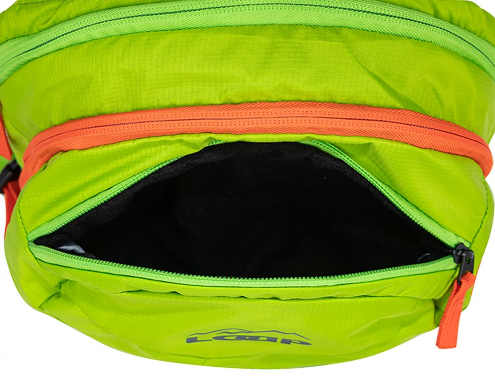Lehký dvoukomorový batoh má hlavní zip vybavený krytím a plní se vrchem. K dispozici máte čtyři vnější kapsy a jednu vnitřní kapsu s prostorem na hydrovak. Ramenní popruhy jsou anatomicky tvarované. Zádům odlehčí také bederní pás, boční kompresní popruhy a posuvná prsní spojka. Součástí batohu jsou také reflexní prvky.