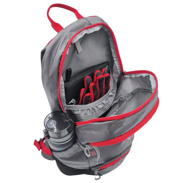 Propracovaný cyklistický batoh SPEED 15 s rozmanitým členením se stane rychle vaším nepostradatelným společníkem na všech cyklovýletech. Batoh má polstrované zádové panely, pohodlné nastavitelné polstrované ramenní popruhy s hrudním páskem a také nastavitelný bederní pás. Hlavní prostor zapínaný na zip lze využít pro umístění vodního rezervoáru nebo pro uložení věcí potřebných pro vaše cyklovýlety. Batoh má také další přední horní kapsu na zip a dvě boční jednoduché kapsy. Ve spodní kapse najdete síťku pro uložení helmy. Samozřejmostí je poutko na pověšení a reflexní prvky pro větší bezpečnost.