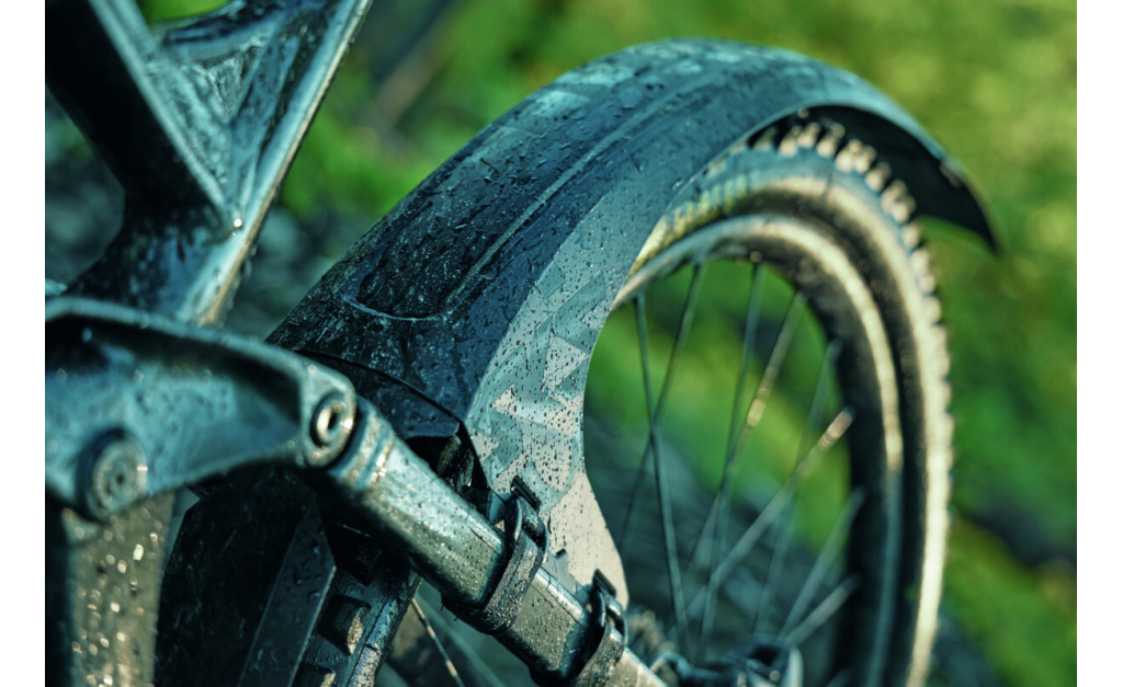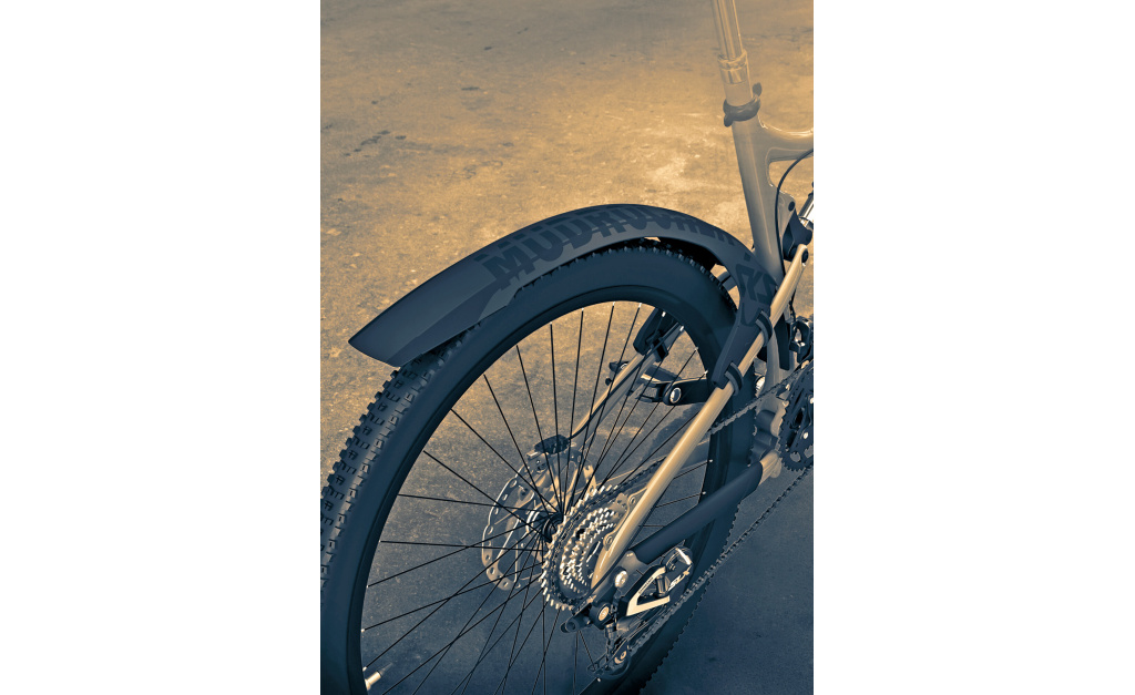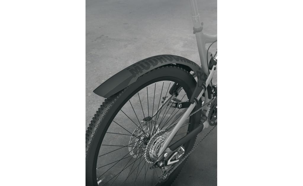 Zadní designový blatník pro celoodpružená kola. Součástí blatníku je prodlužovací díl, který chrání střed, přesmyk a oblast tlumiče. Může být upraven nůžkami podle potřeby, či nemusí být použitý vůbec.