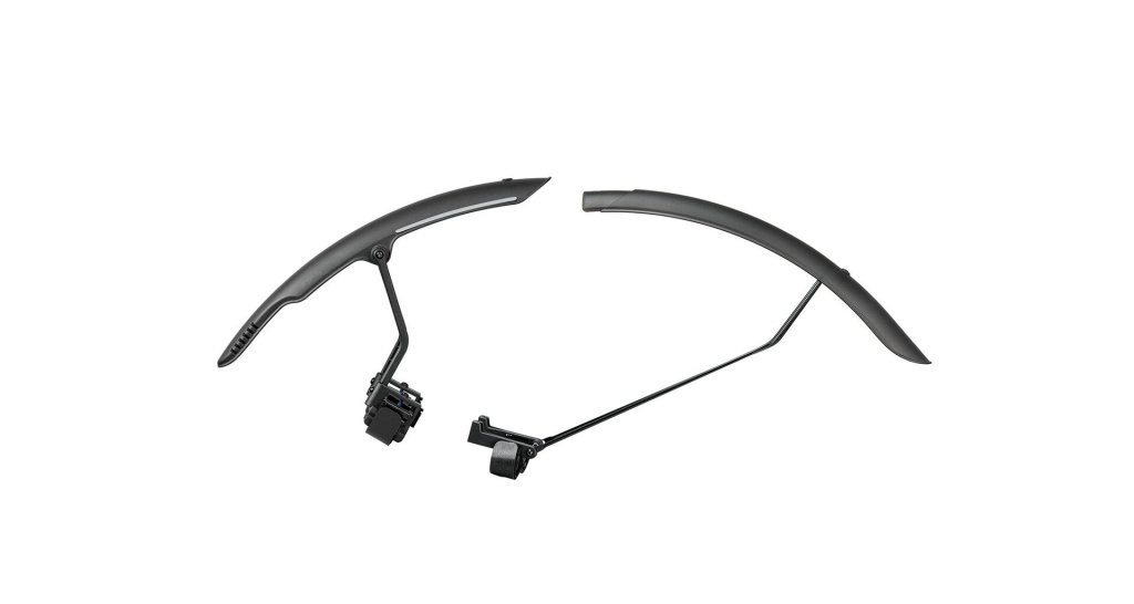 Zadní dvoubarevný blatník s rychlou, bezpečnou a jednoduchou montáží. Nastavitelné vzpěry zajišťují těsnější přilnutí k pneumatice a vynikající ochranu před blátem, zatímco vysoce leštěná spodní strana pomáhá předcházet usazování nečistot a usnadňuje čištění. Přiložené reflexní nálepky 3M zajišťují bezpečnost v noci.