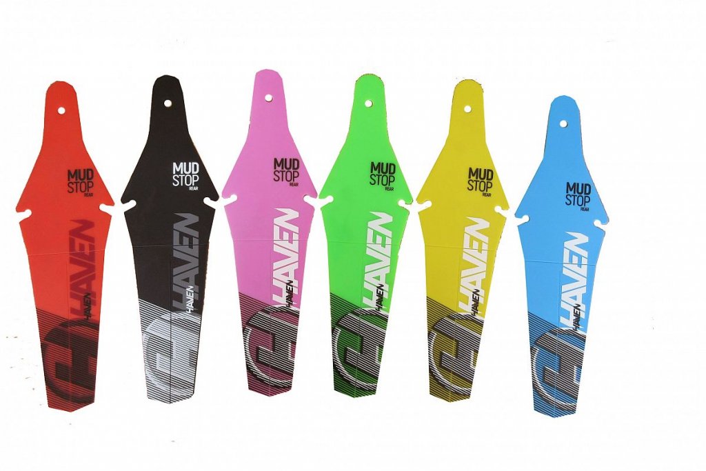 Blatníky vyrobeny z kvalitního plastu v kombinaci zářivých barev. Vhodný pro většinu odpružených vidlic (výztuha vidlice musí být vpředu) a drtivou většinu sedel.