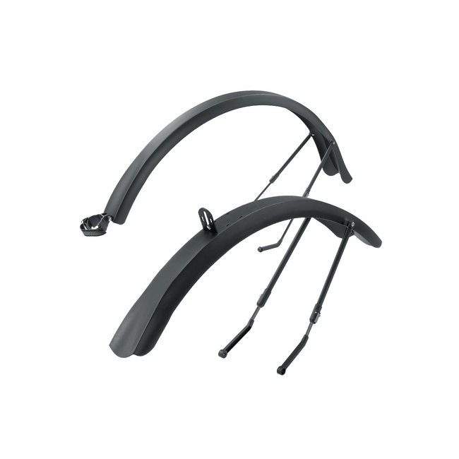 Decentní trekingové blatníky v setu předního a zadního blatníku. Nastavitelné hliníkové vzpěry s QR páčkami pro rychlé a precizní nastavení blatníku nad pláštěm. Vysoce odolný plast má leštěnou spodní stranu pro co nejnižší ulpívání nečistot na blastníku. Blastníky pasují pro pláště až do rozměru 700 x 44c.