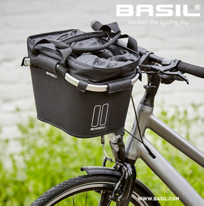 Stylový lehký košík na řídítka. S deskou adaptéru Basil KF - lze snadno nasadit a odejmout. (Adaptér musíte zakoupit samostatně) Vodoodpudivý polyester, stahovací šňůrka. Objem : 15 l. Hmotnost: 1,2 kg. Rozměry: 37x28x25 cm.