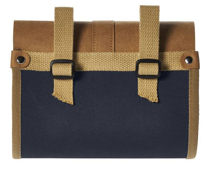 Luxusní designová brašna vyrobená z velmi kvalitní bavlny s omyvatelnými detaily. Brašna má vnitřní vyztužení Způsob uchycení: pomocí pásků sedlové vzpěry pod sedlo Vnějšé rozměry: 20 x 7 x 14cm Objem: 0,5 L Barva: tmavě modrá
