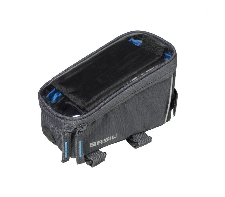 Brašnička do rámu. Součástí je praktické pouzdro pro bezpečný transport vašeho smartphonu. Přiložený kryt proti dešti. Otvor na kabely od sluchátek. Vodoodpudivý polyester. Reflexní prvky. Upevnění na rám pomocí přezek. Rozměry: 19x11x11 cm. Maximální nosnost 5 kg