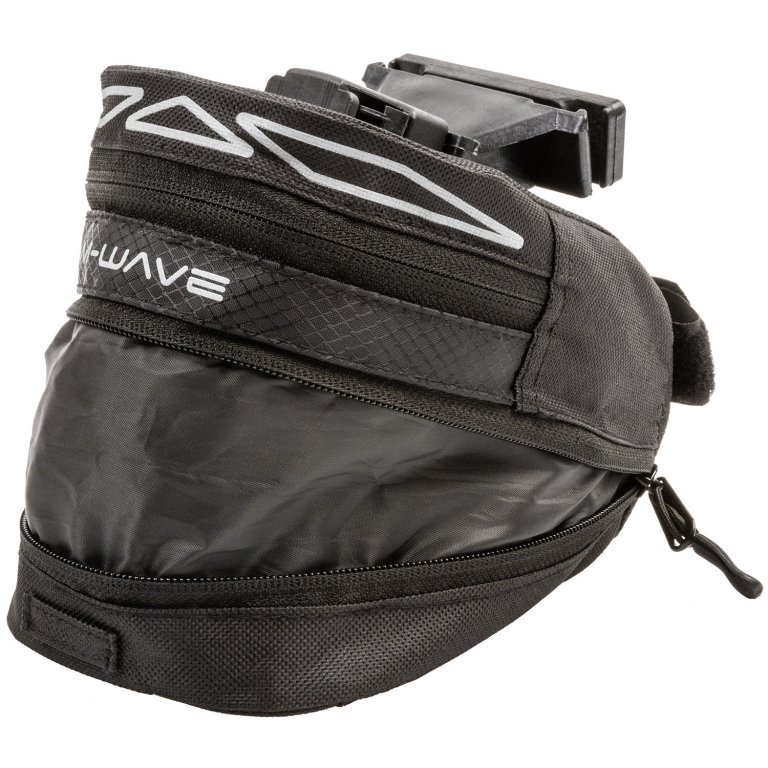 Podsedlová brašna s klipem a suchými zipy Upevnění: 3 suché zipy Materiál: nylon Možnost rozložení Reflexní prvky Rozměry (d x š x v): 180 x 120 x 110-180 mm Barva: černo-šedá Balení: karta M-Wave