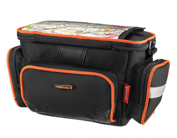 brašna na řidítka s Clip-on držákem,hlavní kapsa polstrovaná na fotoaparát, dvě boční a jedna přední kapsa, vrchní průhledná kapsa na mapu, odnímatelný ramenní popruh, reflexní prvky, materiál: voděodolný Nylon 1680 D, rozměry: 25 x 17 x 16 cm, hmotnost:0,628 g, obsah 4,4L, nosnost 3kg. Držák pro řidítka 25,4-31,8mm, vnitřní šířka 82mm, prodloužená délka 87mm ,vhodné pro brašnu IB-HB3 (34480), IB-HB4 (34481).