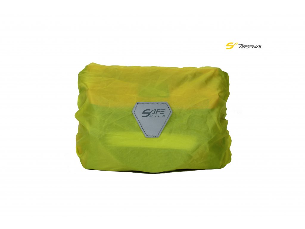 žlutý návlek proti znečištění s reflexním prvkem = návlek ochrání brašnu v případě vlhka, mlhy, mrholení. POZOR ne v případě deště, návlek není pláštěnka