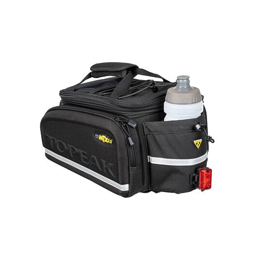 Brašna MTX TrunkBag DX s hlavní komorou, dvěma bočními kapsami na zip a zadním držákem na láhev s vodou. Náš jedinečný konstrukční postup kombinuje tvarované panely a pružnou tkaninu pro zajištění tuhosti a voděodolnosti. Kompatibilní se všemi nosiči MTX QuickTrack® 2.0.