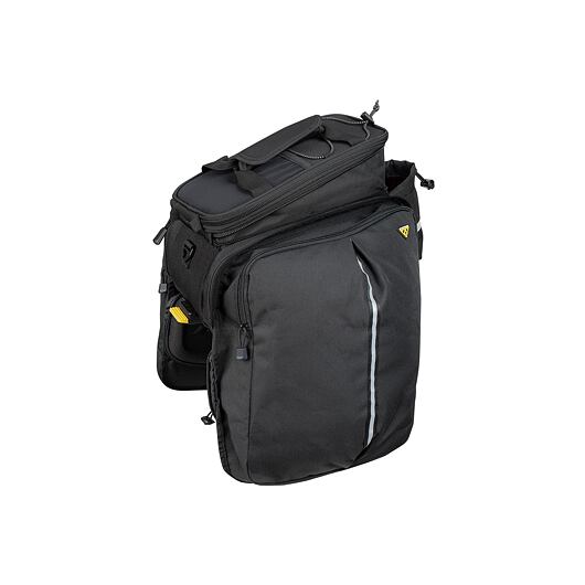 Odolná brašna na zadní nosič s velkou kapacitou. Kromě rozšiřitelné horní části a zadního držáku na láhev se rozšiřují také boční panely na plnohodnotné kapsy a maximalizují tak kapacitu. Brašna kombinuje tvarově stálý materiál s pružnou a odolnou textilii Denier 600.