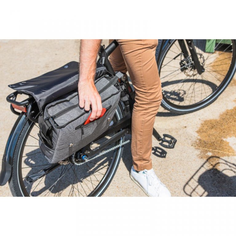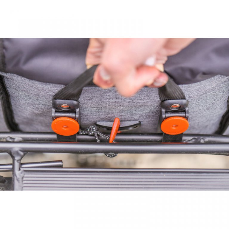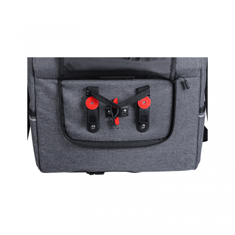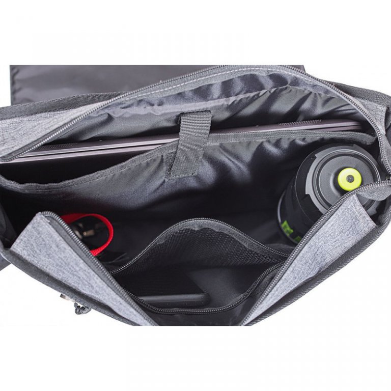 vám umožní převážet svůj notebook (15 palců) a také jiné předměty. Má jednoduchý a univerzální upevňovací systém pro montáž a přpravu na nosiči.Zip a magnetická zapínací tlačítka umožňují rychlý přístup do hlavní přihrádky (všimněte si, že kožené řemínky jsou pouze ozdobné a pod nimi jsou patentky). Vnější kapsa na přední straně a další vnitřní kapsa umožňuje uložení menších předmětů.Uvnitř tašky je popruh, který slouží pro skladování lahve s vodou. Na obou stranách tašky jsou do kterých lze schovat popruh přes rameno, když je taška namontována na nosiči.