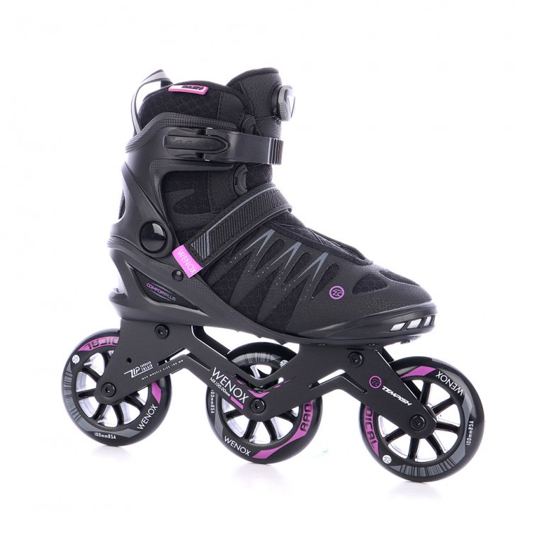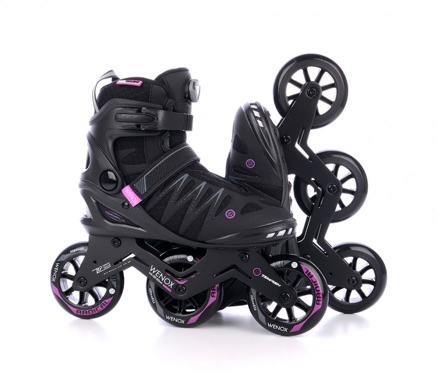 Velmi pevný podvozek pro 3 kolečka o maximální velikosti 100 mm umožní bruslit velmi rychle a pohodlně i na delší vzdálenosti.