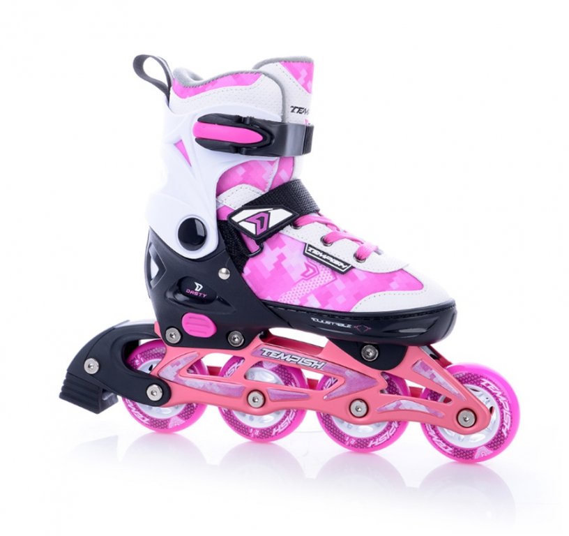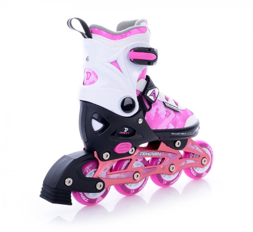 DASTY GIRL dívčí roztahovací brusle, určené pro rekreační a kondiční bruslení. Střední a vysoká zátěž, začínající i pokročilí bruslaři. Brusle mají jednoduchý a pohodlný systém zvětšení velikosti tlačítkem na boční straně skeletu. Brusli lze nastavit na 4 velikosti. Jedná se o velice kvalitní dětskou brusli jak designem tak i konstrukcí skeletu a podvozku. K bruslím dodáváme zdarma inbusový klíč.