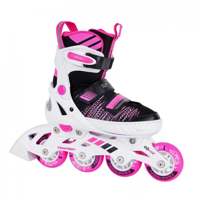 Dětské nastavitelné brusle pro rekreační i kondiční bruslení. Brusle jsou určeny pro rekreační sport, začínající a pokročilé malé bruslaře. Měkká rychleschnoucí výstelka zajišťuje pohodlí dětské nohy. Vnitřní botička je dobře anatomicky tvarována, vnější plastový skelet drží pevně kotník. Tyto dětské brusle jsou velmi vhodné pro začínající bruslaře díky funkční konstrukci a anatomicky řešenému tvaru skeletu i vnitřní botičky. Brusle mají jednoduchý a pohodlný systém zvětšení velikosti tlačítkem na boční straně skeletu. Brusli lze nastavit na 4 velikosti.