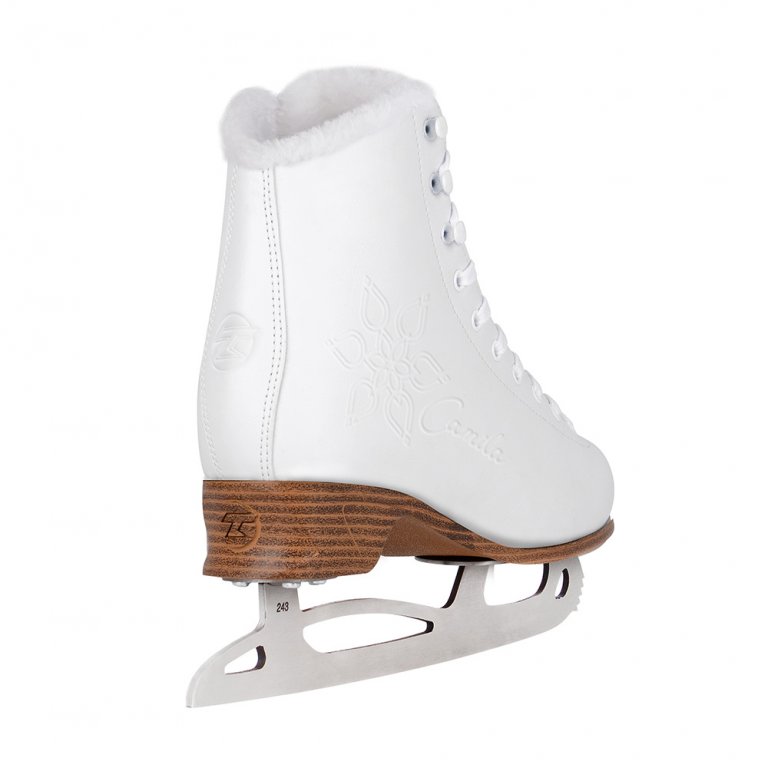 Dámská brusle CAMILA ICE je určena pro náročnějšího zákazníka. Bota brusle je z kvalitního syntetického materiálu na bázi PU. Krasobrusle má pevný skelet s anatomickým tvarováním v oblasti kotníku. Vložená bandáž se přizpůsobí tvaru chodidla a zajistí pohodlnou funkci. Na vnitřní výstelku je použit materiál nové generace SUPER SOFT FUN FUR, který je příjemný na dotek a disponuje výbornými izolačními vlastnostmi. Při bruslení zajišťuje příjemný pocit komfortu a tepla. Bota je osazena na nové originální podešvi TEMPISH, jež má nižší podpatek a nový fresh vzhled. Použitý nový design nože TEMPISH WAVE – je více elegantní, vzdušnější a působí odlehčeně, přitom je pevnější. Kvalitní pevné spojení mezi svrškem a podešví.
