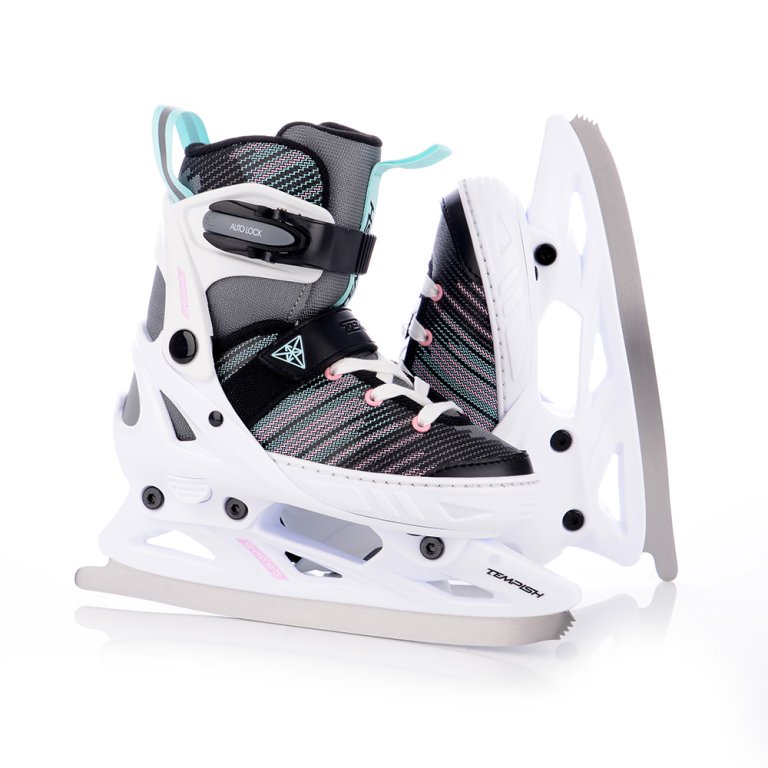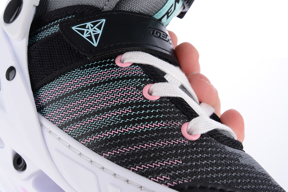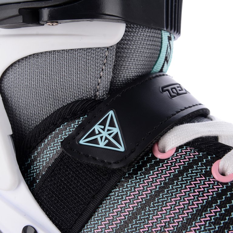 Skelet brusle je pružný až do -20°C. Brusle jsou určeny pro rekreační sport, začínající a pokročilé malé bruslaře. Měkká rychleschnoucí výstelka zajišťuje pohodlí dětské nohy. Vnitřní botička je dobře anatomicky tvarována, vnější plastový skelet drží pevně kotník. Tyto dětské brusle jsou velmi vhodné pro začínající bruslaře díky funkční konstrukci a anatomicky řešenému tvaru skeletu i vnitřní botičky. Brusle mají jednoduchý a pohodlný systém zvětšení velikosti tlačítkem na boční straně skeletu. Brusli lze nastavit na 4 velikosti.