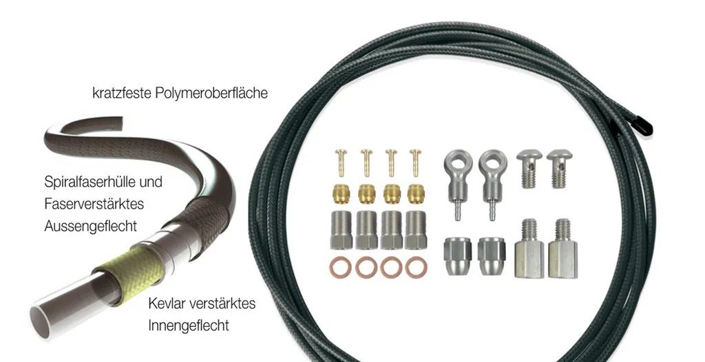 Zlepšete brzdný účinek svého kola pomocí brzdového vedení XLC BR-X64. Je určeno pro hydraulické brzdy, díky své pevné struktuře zabraňuje rozpínání kapaliny a nabízí optimální přenos tepla. Brzdové vedení je velmi pružné a zajišťuje nízké tření a účinný výkon. Díky povrchu odolnému proti poškrábání, spirálovému vláknu a vnitřnímu opletení z kevlaru je brzdové vedení XLC BR-X64 mimořádně odolné.