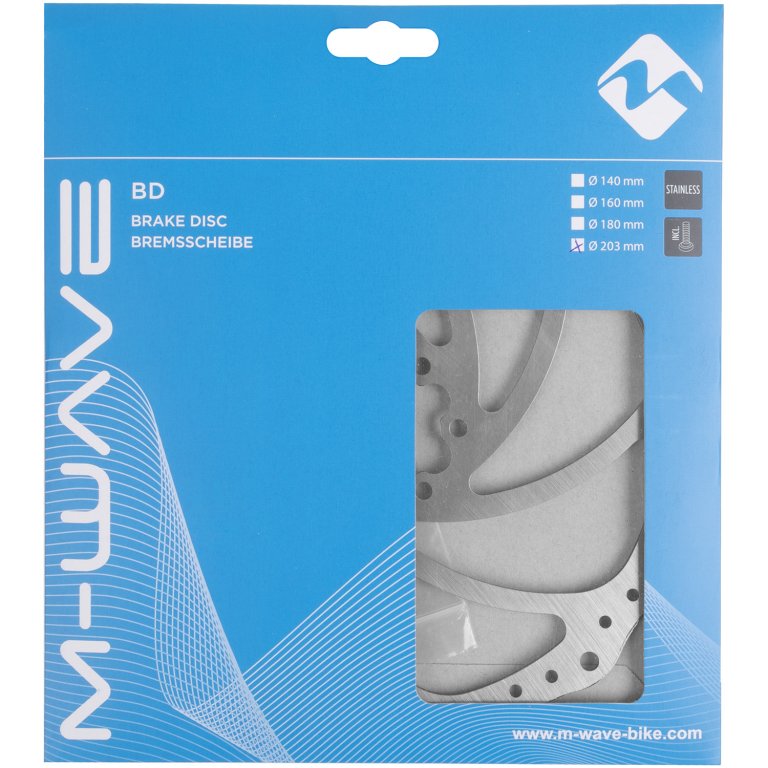 Brzdový kotouč M-Wave Uchycení: 6 děr Průměr: 203 mm Hmotnost: 230 g Materiál: ocel Šrouby součástí balení Balení: originální Určeno pro odborný servis