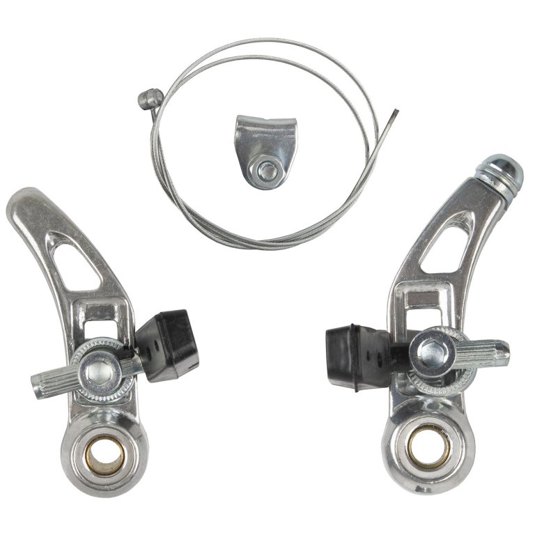 Kompletní sada přední + zadní Typ čelistí - cantilever Sada obsahuje gumičky, šrouby a spojovací lanko Materiál: Al hliník Brzdové gumičky s čepem - bez závitů Barva: stříbrná Balení servisní v sáčku
