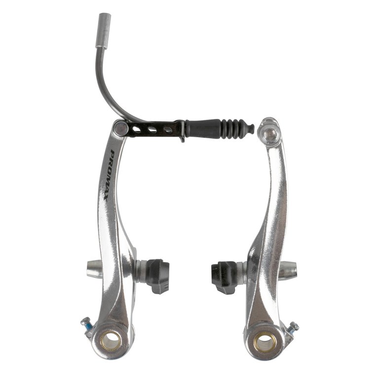 Kompletní sada přední + zadní Tvar čelistí - V-brake - bez otvoru Výška čelistí: 110 mm Pružiny: dlouhé Sada obsahuje gumičky, šrouby a vodítka Materiál: Al hliník Brzdové gumičky: 70mm Barva: stříbrná Výrobce: Promax Hmotnost: Balení servisní v sáčku