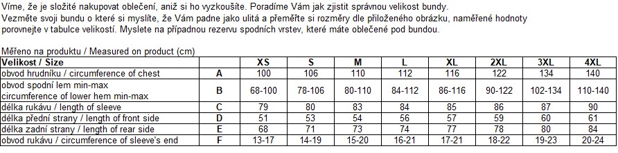 Pozor: střih u velikostí 2XL, 3XL a 4XL je oproti modelu Featherlite 80 změněn a to ve prospěch pánů či dam s bříškem (v oblasti hrudníku a hlavně břicha je střih podstatně rozšířen)!