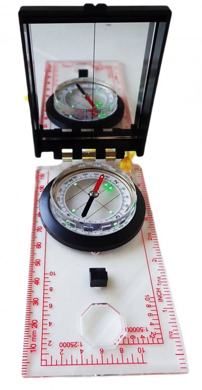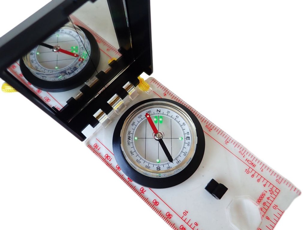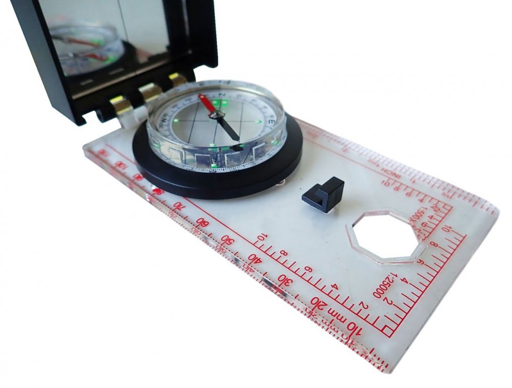 Buzola má otevírací kryt se zrcátkem na spodní straně krytu. Kryt chrání kompas před poškozením a zrcátko umožňuje přesnější měření azimutu. Spodní destička s orientační směrovkou pro určení úhlu trasy je opatřená měřítky pro určení vzdáleností na mapě, dále je součástí krytu zrcátko, lupa umožňuje čtení drobných nápisů v mapě. Buzola slouží pro orientační běh nebo pro turistiku a k orientaci na mapě a v terénu. Součástí výbavy je i šňůrka umožňující zavěšení buzoly na krk.
