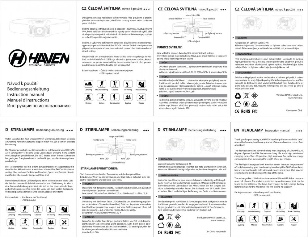 Čelovka je vybavena pohybovým senzorem díky kterému můžete světlo vypnout/zapnout! Čelová svítilna SWEEP má více funkcí, které pomohou při práci nebo sportu a které jsou volitelné pomocí dvou tlačítek na horní straně svítilny.