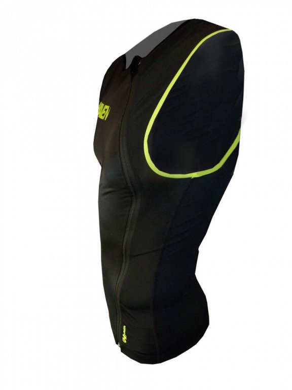 Vesta s celorozepínacím postranním zipem, stretch materiál, který perfektně usadí chránič na správném místě