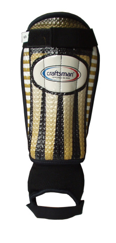 Fotbalové chrániče holení Craftsman jsou vyrobené z potištěné PU kůže, velikost S. Měkká gelová náplň uvnitř chrániče perfektně obepíná holeň a poskytuje kvalitní ochranu nohy při hře. Molitanová výpň ve spodní části chrání kotníky a Achilovu šlachu. Jedná se o velmi kvalitní fotbalové chrániče za hodně příznivou cenu.