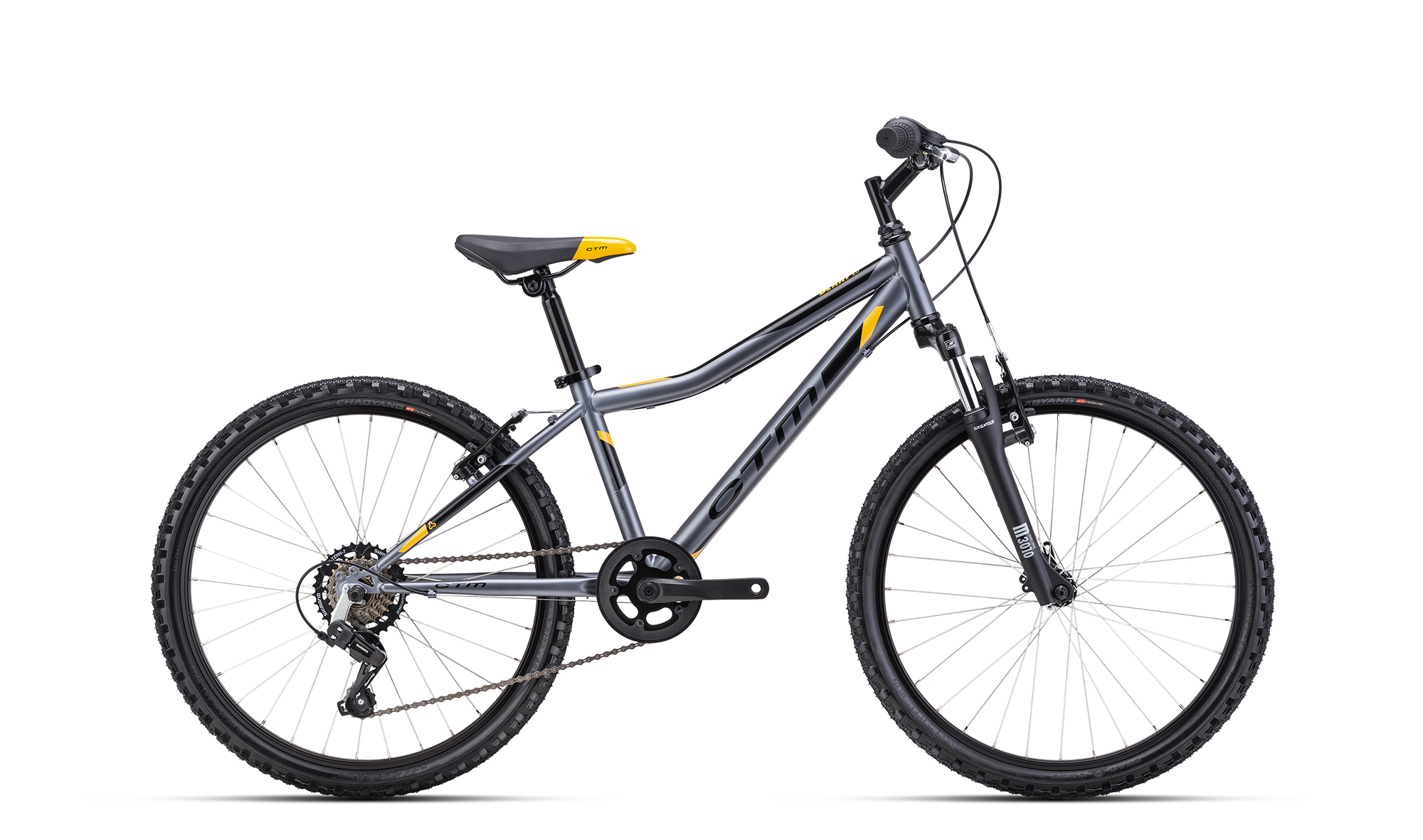 Jízdní kolo CTM BERRY 2.0 2024 matná tmavě šedá /mango. Kolo je vybaveno rámem Hi-Ten, 13" a vidlicí Suntour M3010, 24".