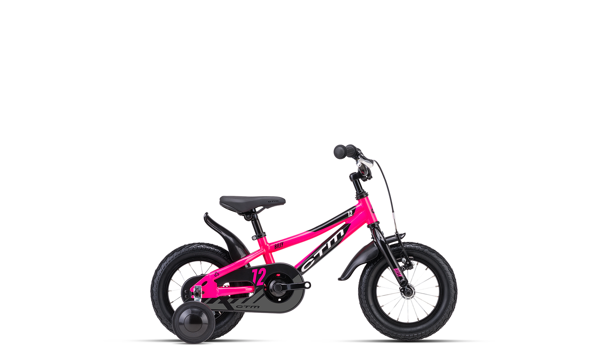 Jízdní kolo CTM BILLY 2025 růžová / černá. Kolo je vybaveno rámem BILLY, Hi-Ten, 6,5 a vidlicí Hi Ten-unicrown 12".
