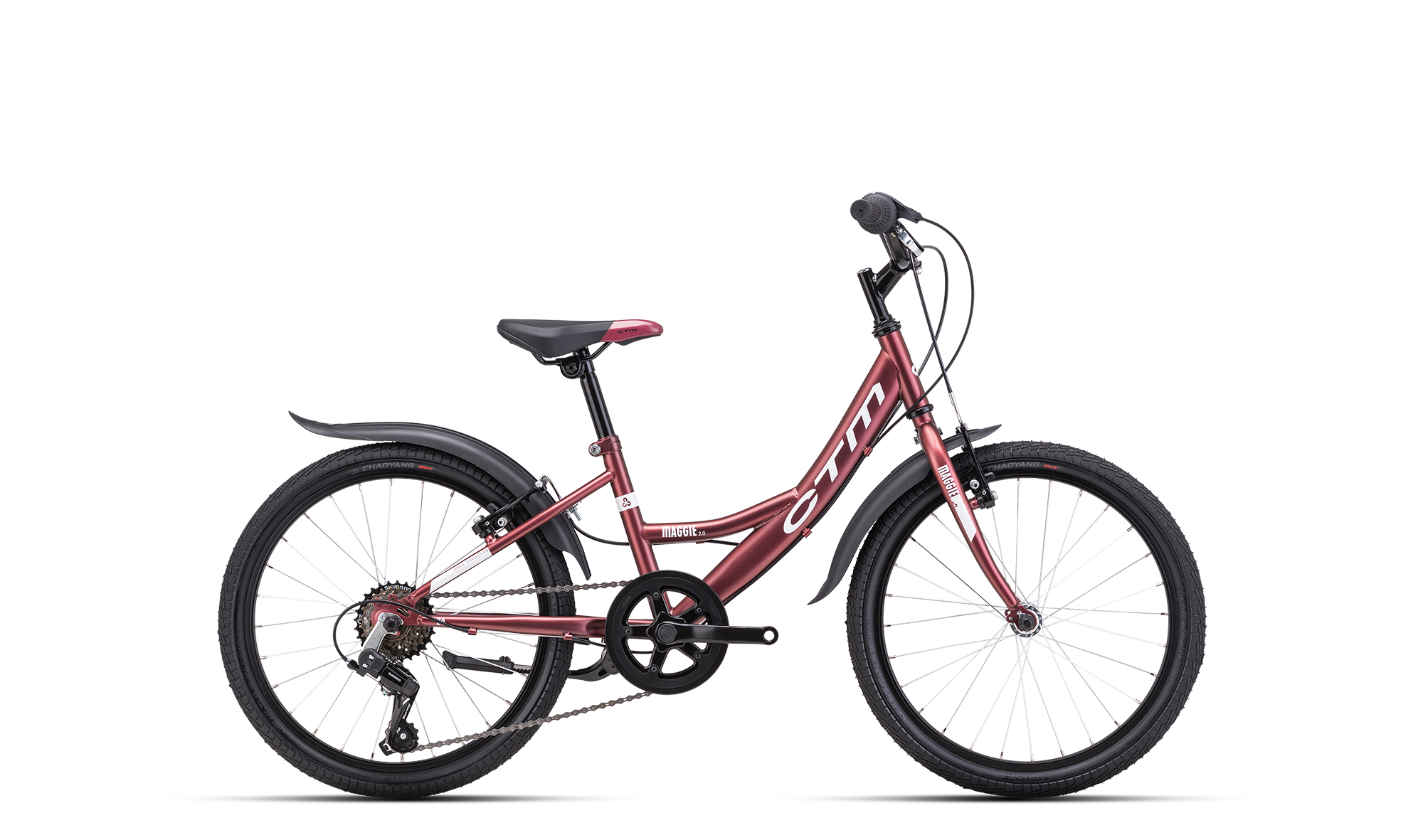 Jízdní kolo CTM MAGGIE 2.0 2024 tmavě fialová perleť. Kolo je vybaveno rámem Hi-Ten, 11" a vidlicí Hi Ten unicrown 20".