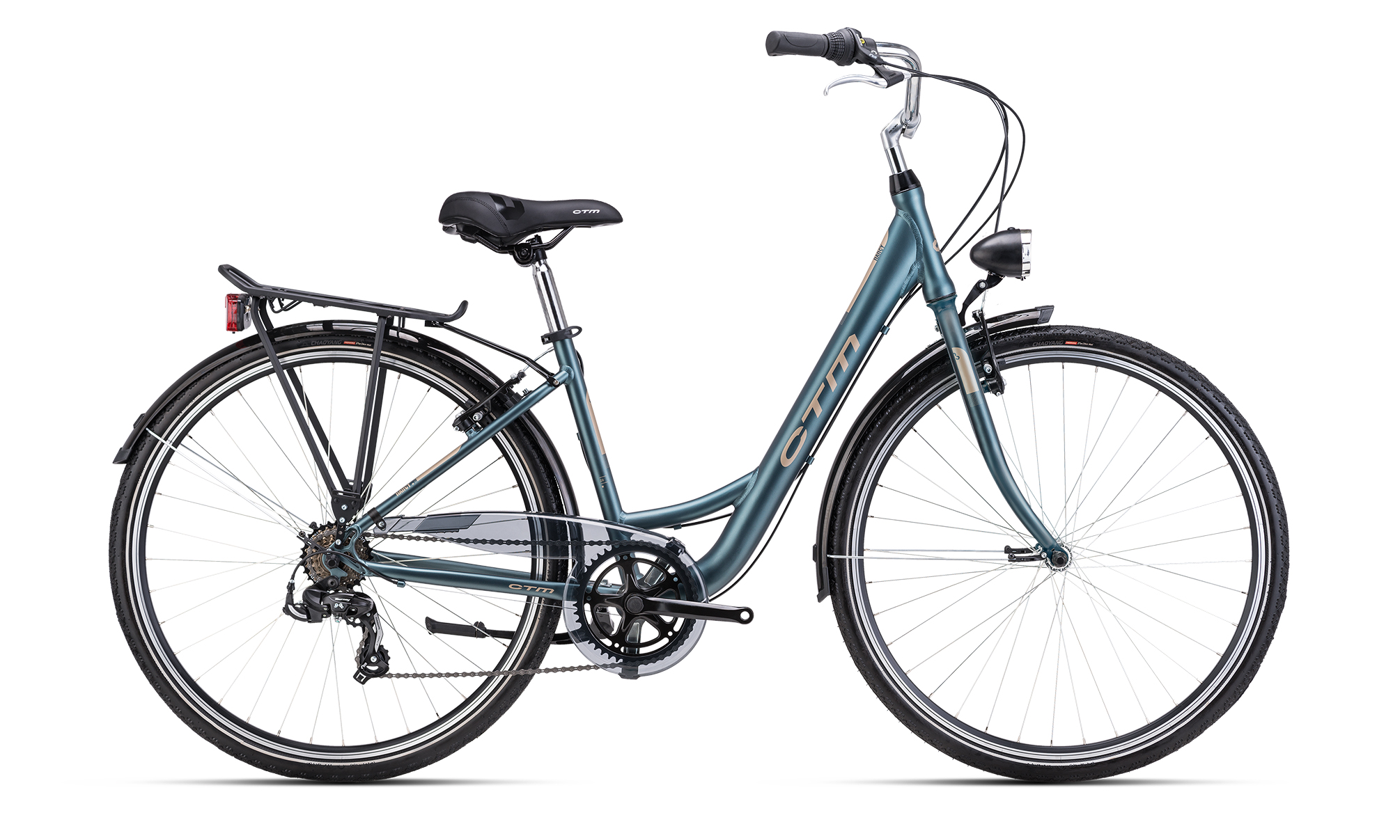 Jízdní kolo CTM NANCY 2025 matná šedozelená / světlezlatá. Kolo je vybaveno rámem ALU 6061, 17 (430mm) a vidlicí Hi ten- unicrown 700C.