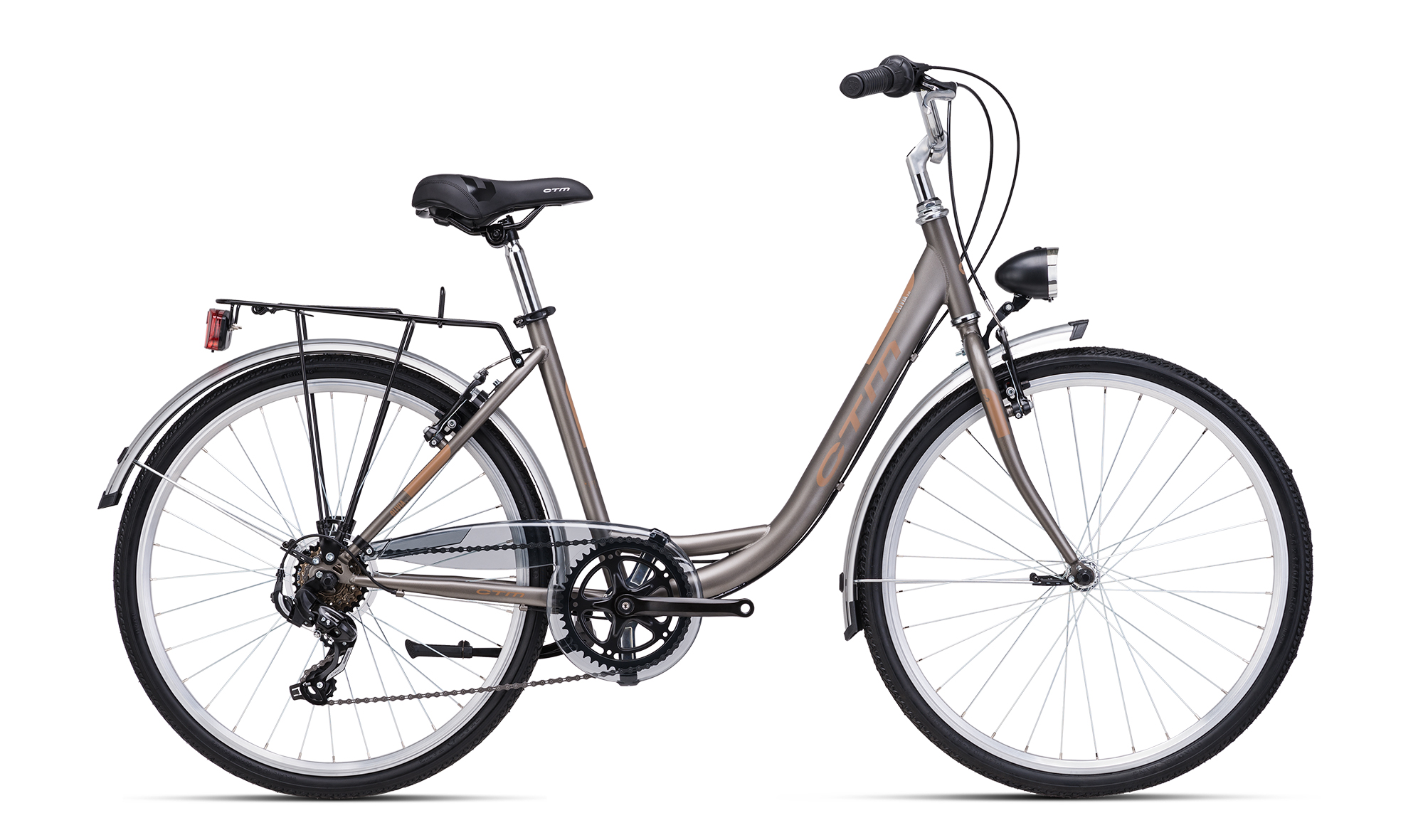 Jízdní kolo CTM OLIVIA 2.0 2025 matná šedohnědá / hnědá. Kolo je vybaveno rámem Hi Ten, 17 (430mm) a vidlicí Hi ten- unicrown 26".