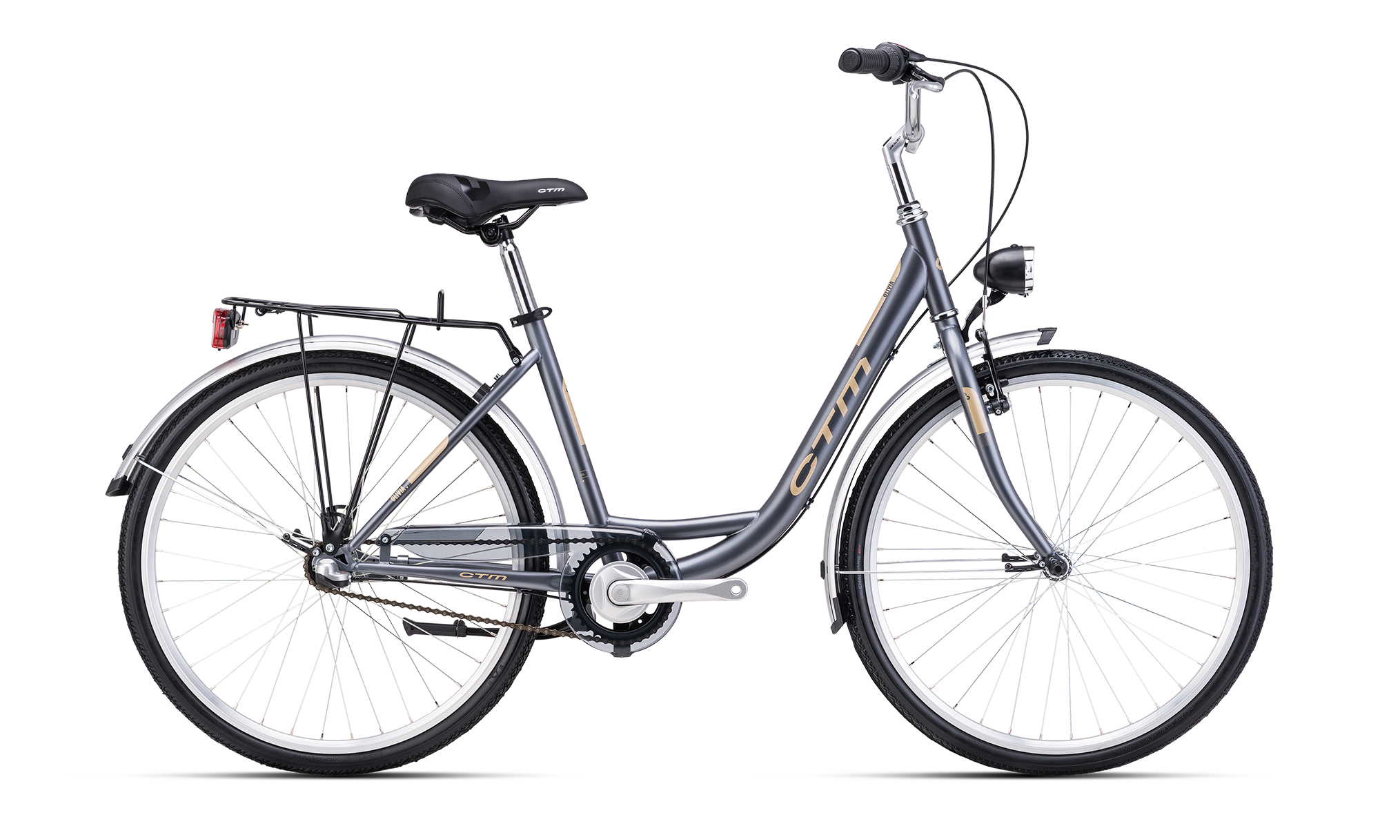 Jízdní kolo CTM OLIVIA 3.0 2026 matná tmavosivá. Kolo je vybaveno rámem Hi Ten, 17" (430mm) a vidlicí Hi ten- unicrown 26".