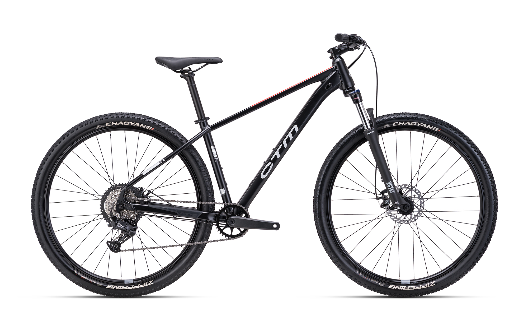 Jízdní kolo CTM RAMBLER 1.0 29" 2025 matná černá / stříbrná. Kolo je vybaveno rámem ALU 6061, S, M, L, XL a vidlicí Suntour XCT30, HLO DS 100mm, 29".
