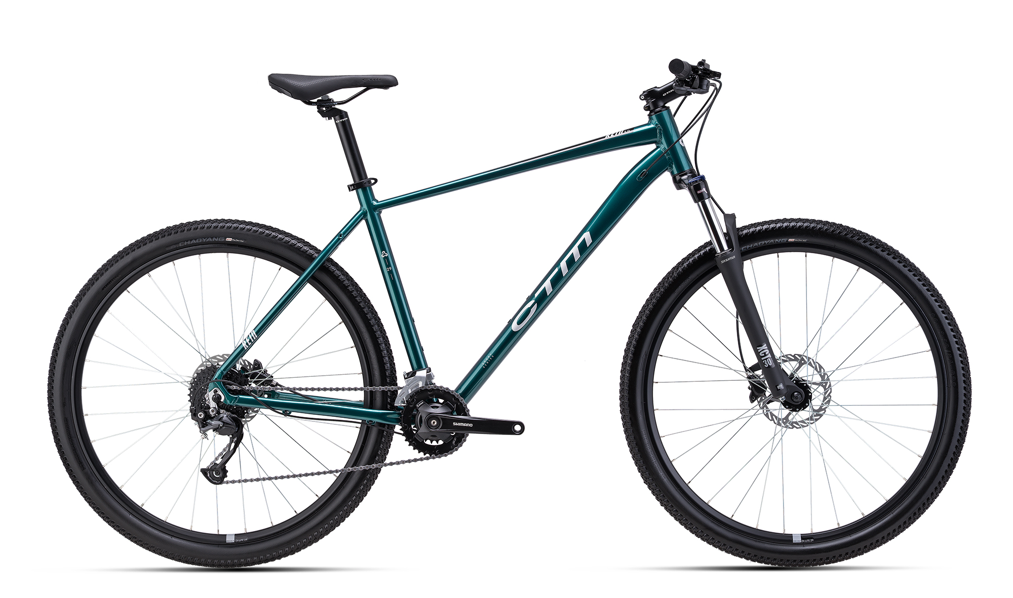 Jízdní kolo CTM REIN 2.0 29" 2026 tmavá zelená. Kolo je vybaveno rámem ALU 6061, M, L, XL a vidlicí Suntour XCT30, HLO DS 100mm, 29".