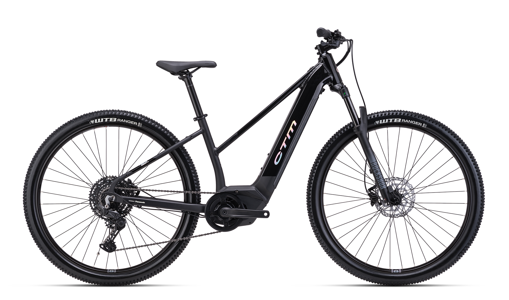Jízdní kolo CTM ROXXY GX PRO 2025 lesklá černá / matná černá. Kolo je vybaveno rámem ALU 6061, M, L a vidlicí Rock Shox JUDY SILVER TK, SA, 120mm, boost™ 15x110axle.