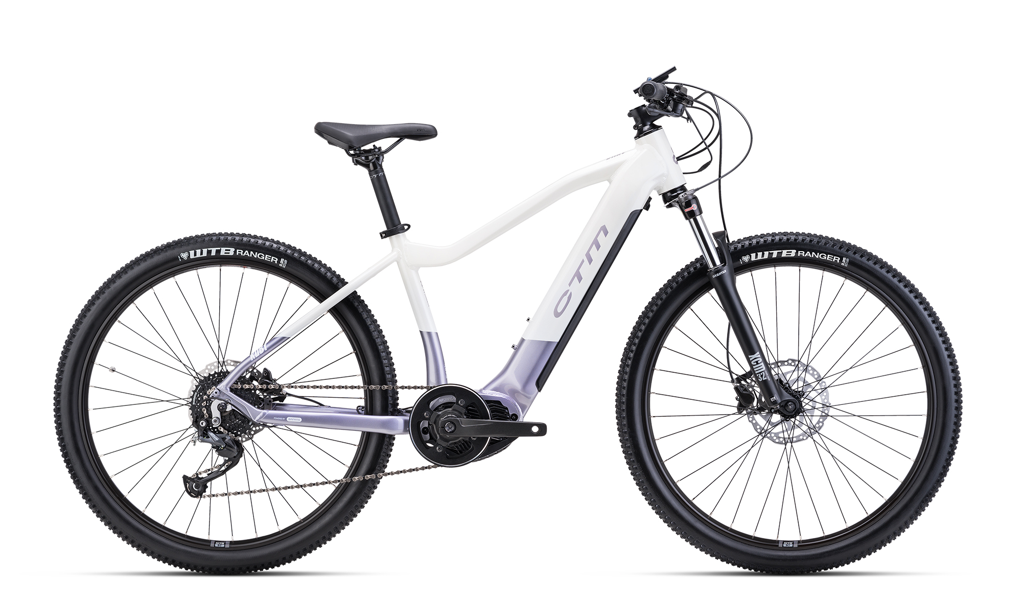 Jízdní kolo CTM RUBY 27,5" 2024 bílá perleť / světlofialová perleť. Kolo je vybaveno rámem ALU 6061, S(14"), M (16"), L (18") a vidlicí Suntour XCM32 ATB, RL,DS, 100mm.