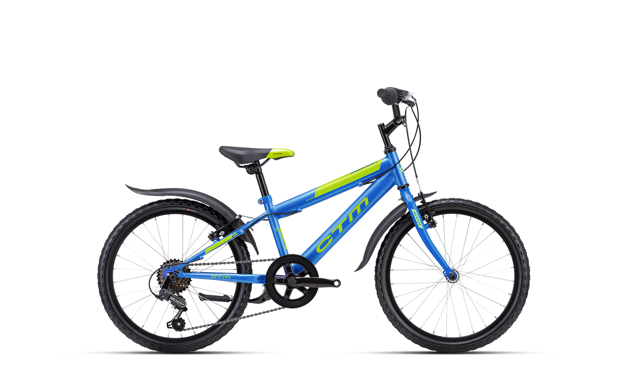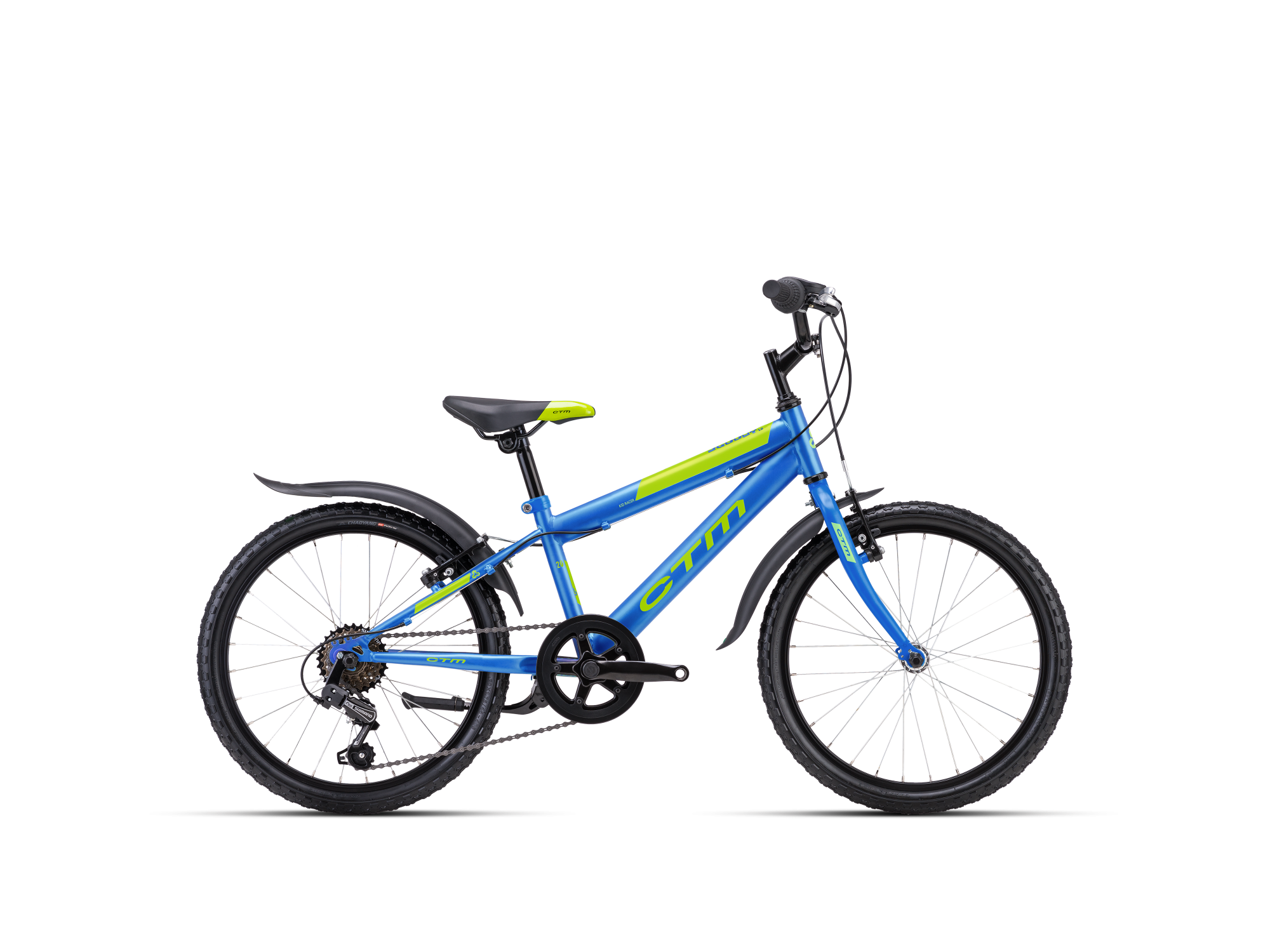 Jízdní kolo CTM SCOOBY 1.0 2024 matná modrá perleť / zelená. Kolo je vybaveno rámem Hi-Ten, 11" a vidlicí Hi Ten unicrown 20".