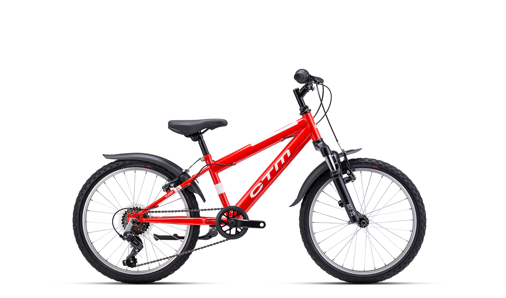 Jízdní kolo CTM SCOOBY 2.0 2026 červená. Kolo je vybaveno rámem SCOOBY, Hi-Ten, 11" a vidlicí CTM XCF 60mm travel, 20".