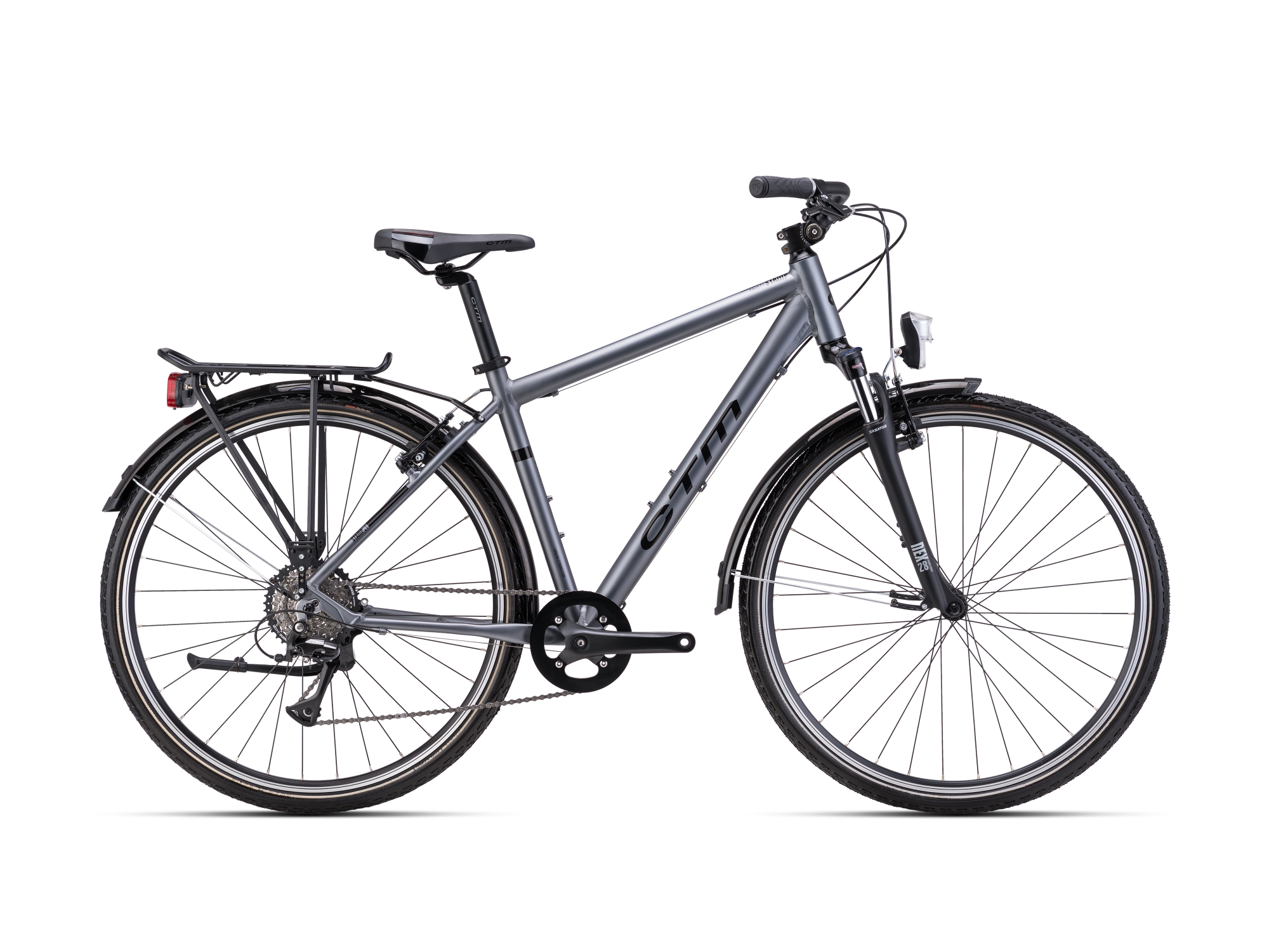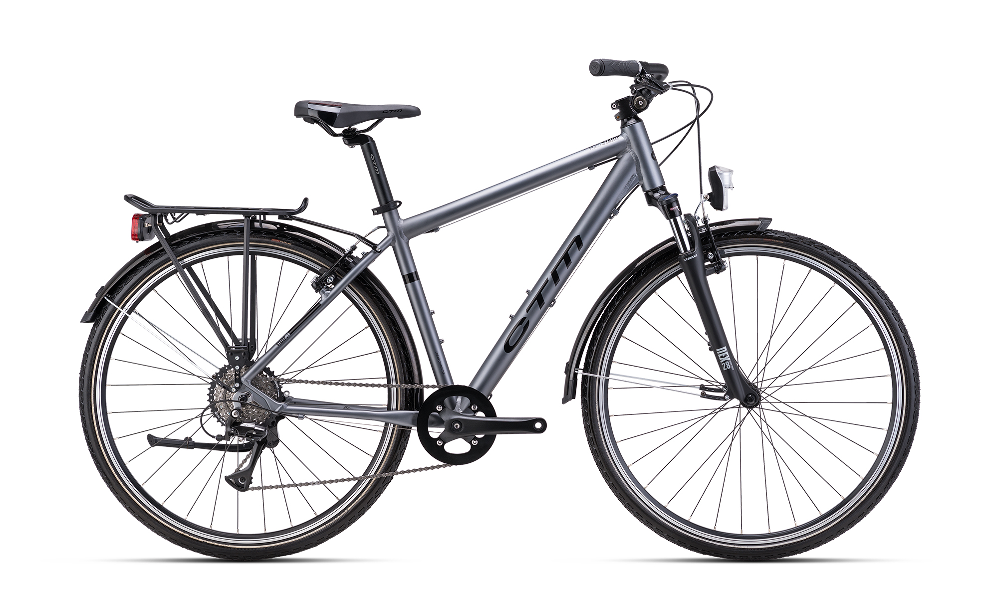 Jízdní kolo CTM STAMP 2024 matná šedá. Kolo je vybaveno rámem ALU 6061, 19" (480mm) , 21" (530mm) a vidlicí Suntour NEX, HLO, 700C.