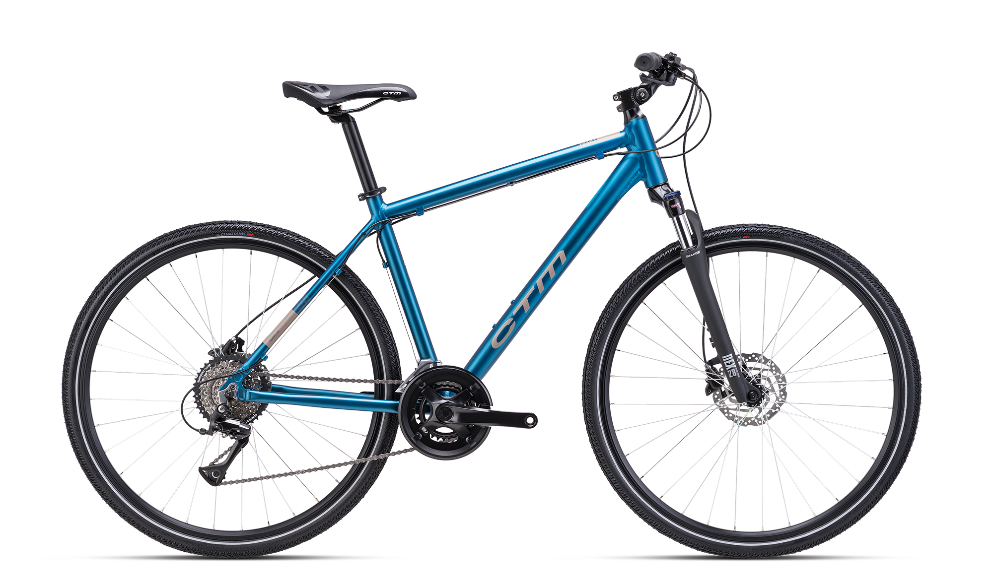 Jízdní kolo CTM TRANZ 2025 matná hlubokomodrá / sivohnědá. Kolo je vybaveno rámem ALU 6061, M, L, XL a vidlicí Suntour XCE28 DS 29".