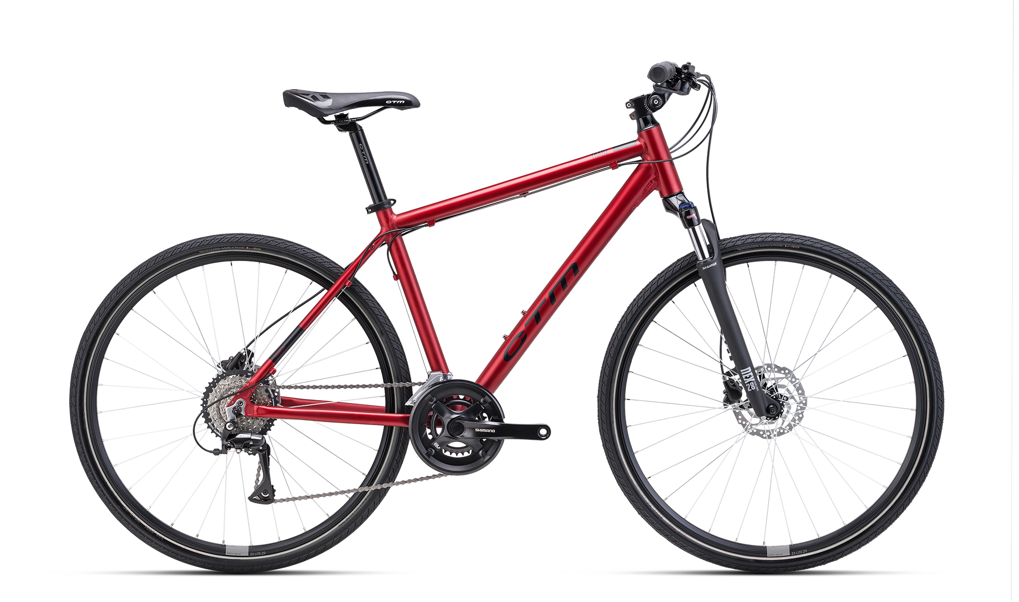 Jízdní kolo CTM TRANZ 3.0 2024 matná červená. Kolo je vybaveno rámem ALU 6061, M (17"), L (19"), XL (21") a vidlicí Suntour NEX, HLO, DS, 700C.