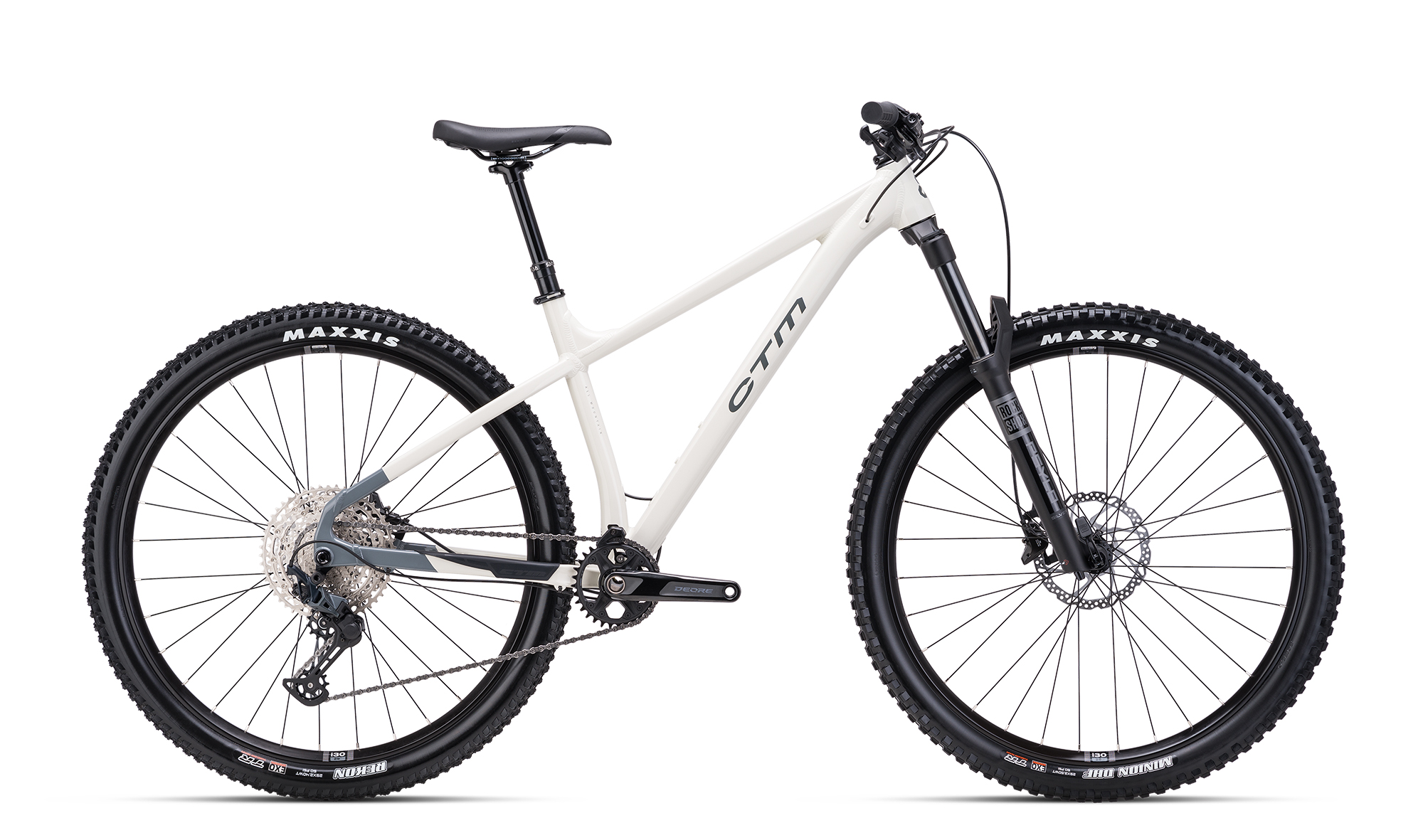 Jízdní kolo CTM ZEPHYR PRO 2025 lesklá šedá / slonovinová. Kolo je vybaveno rámem ALU 6061, M, L, XL a vidlicí Rock Shox PSYLO SILVER RC, SA, 140mm, boost™ 15x110axle.