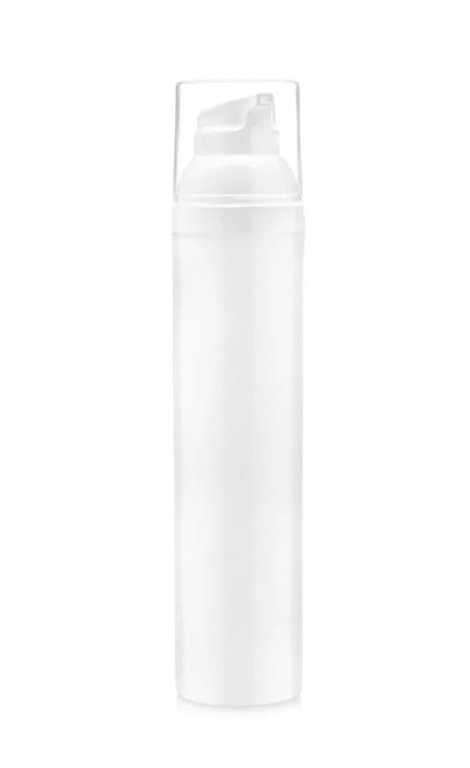 Bílá dóza s dávkovačem vhodná na krémy. Airless obal - obal brání kontaktu výrobku s okolním vzduchem a pomáhá tak chránit výrobky před znečištěním, mikrobiální kontaminací a možnou oxidací.